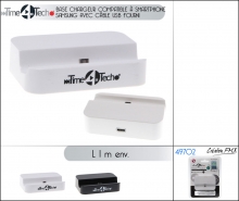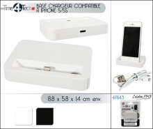 Base chargeur compatible à Iphone 5/5S avec câble USB fourni / 2 couleurs asst.