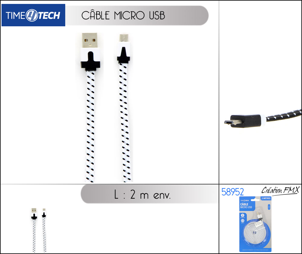 Câble MICRO USB - Longueur: 2 mètres - x2 assoritments:/ 1A