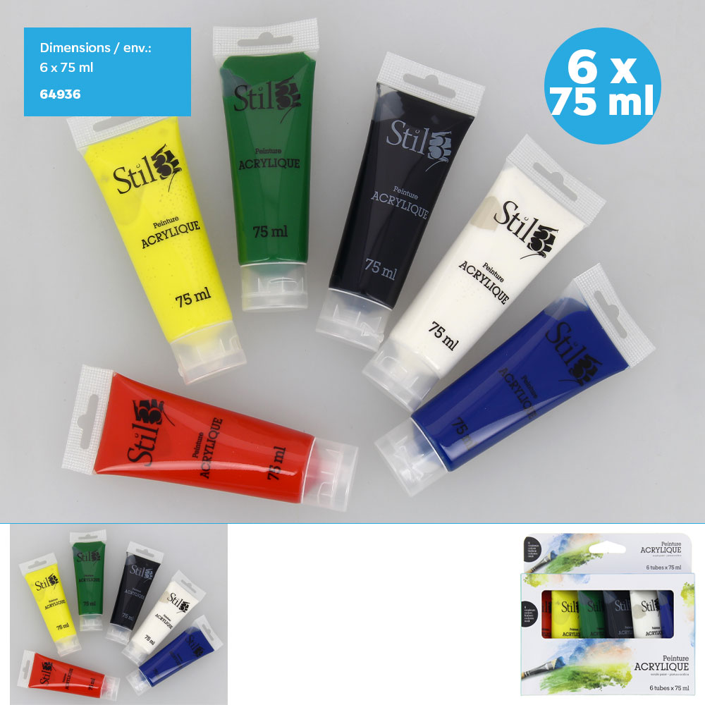 tube de peinture primaire acrylique 75ml x6pcs (6 couleurs)