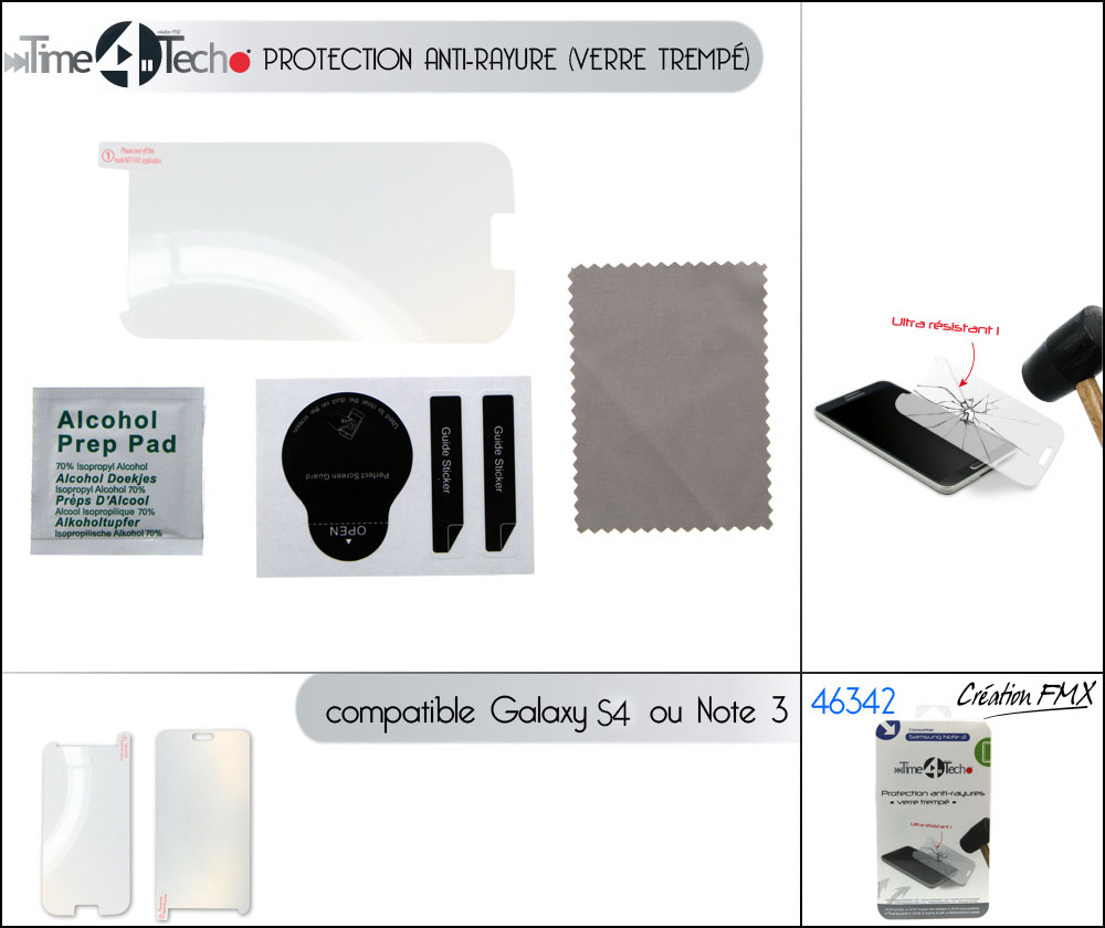 Protection anti-rayures - verre trempé (2 asst : compatible Samsung S4 ou Samsung Note3)